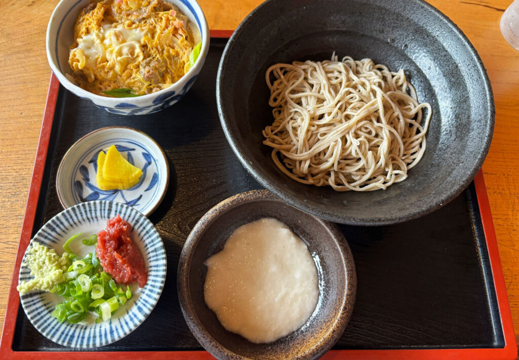 私たちは、人気メニューの手打二八蕎麦のセットを頂きました。