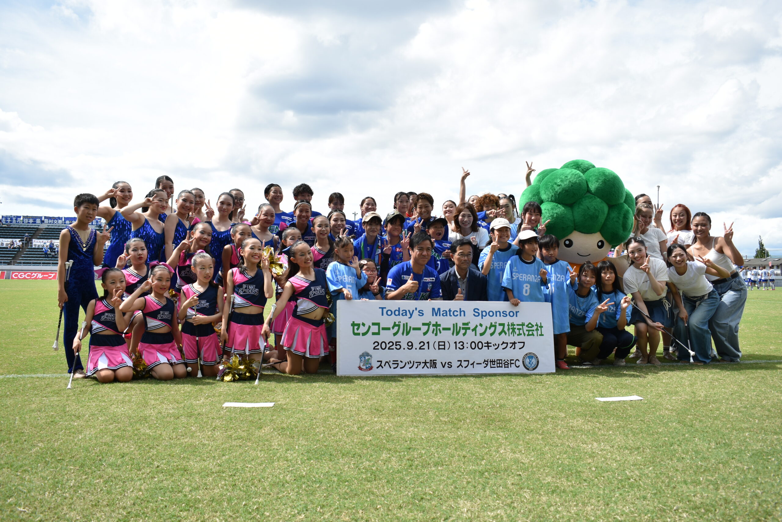 〜河内長野市長さま、モックル、マッチスポンサー センコーグループホールディングス株式会社さま、バトントワラーキャッツアイさま、エスコートキッズの皆さまと集合写真〜