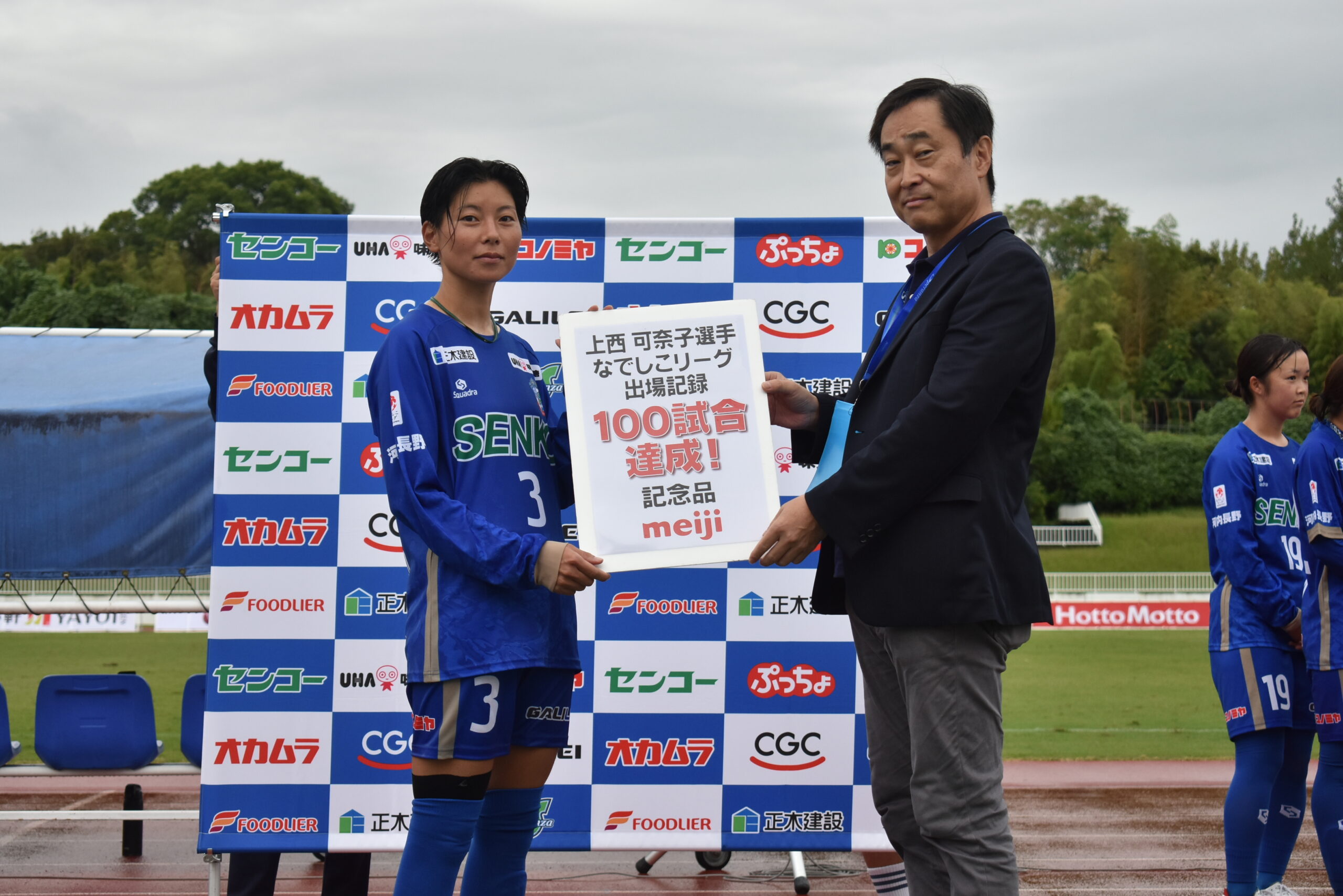 上西選手100試合〜花束贈呈〜