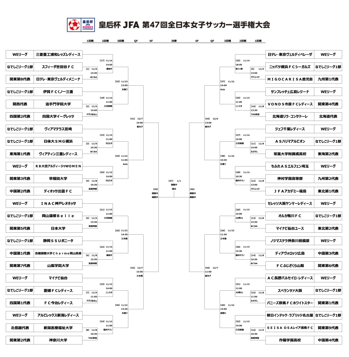 皇后杯 JFA 第47回 全日本女子サッカー選手権大会 組み合わせ・日程のお知らせ