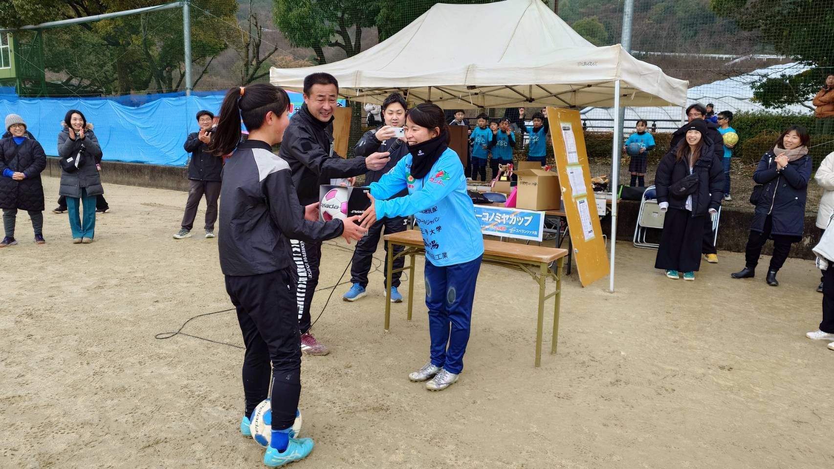 当日はあいにくの雨により午後からの開催となりましたが、子どもたちの元気な姿とともに会場は大いに盛り上がりました。トップチームの選手もリフティング大会やフレンドリーマッチに参加し、地域の皆さまと交流させていただきました。
