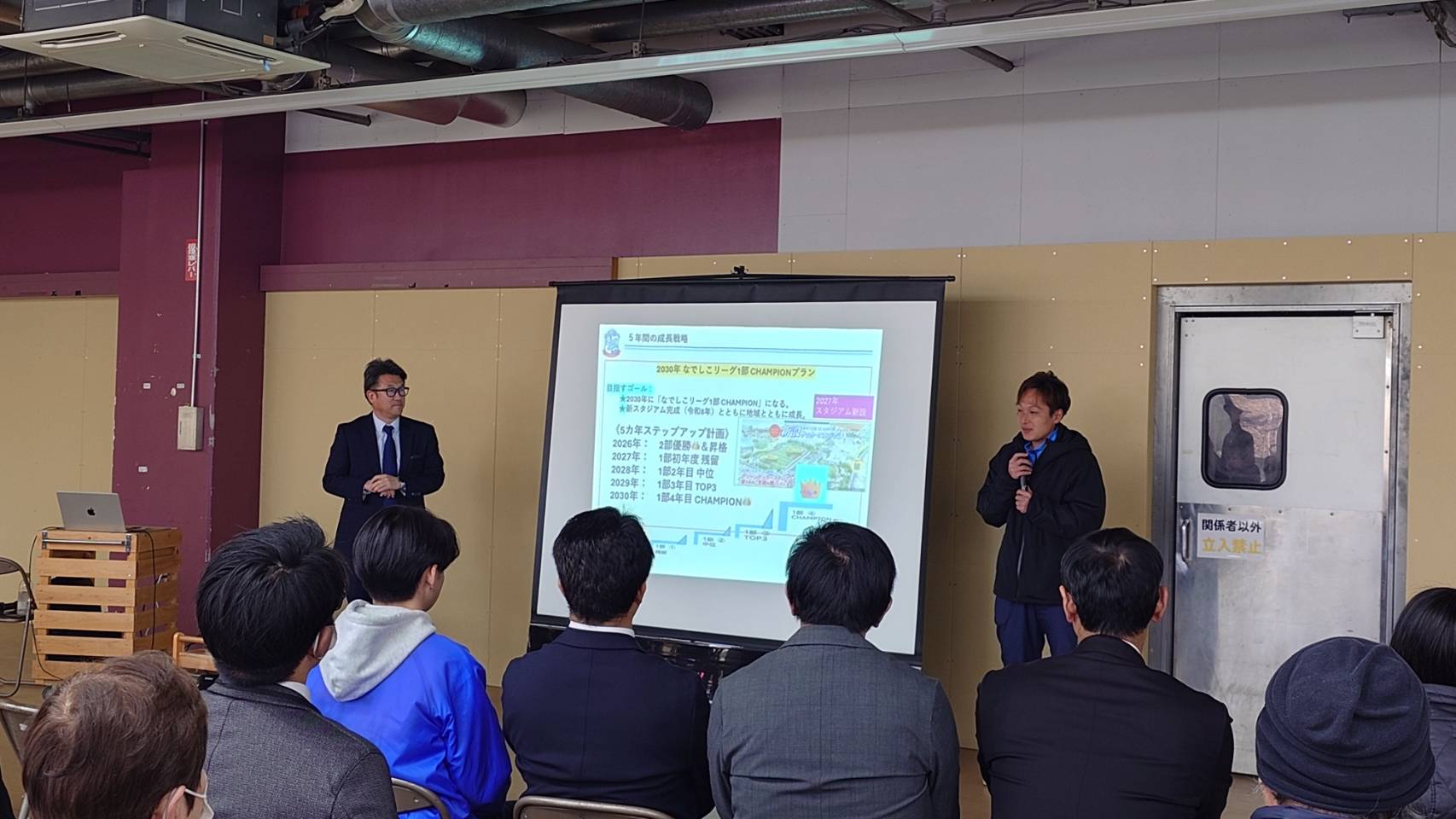 スペランツァ大阪からは、芋縄代表、坪佐社長、丸形選手が出席し、地域の皆さまと交流を深めました。