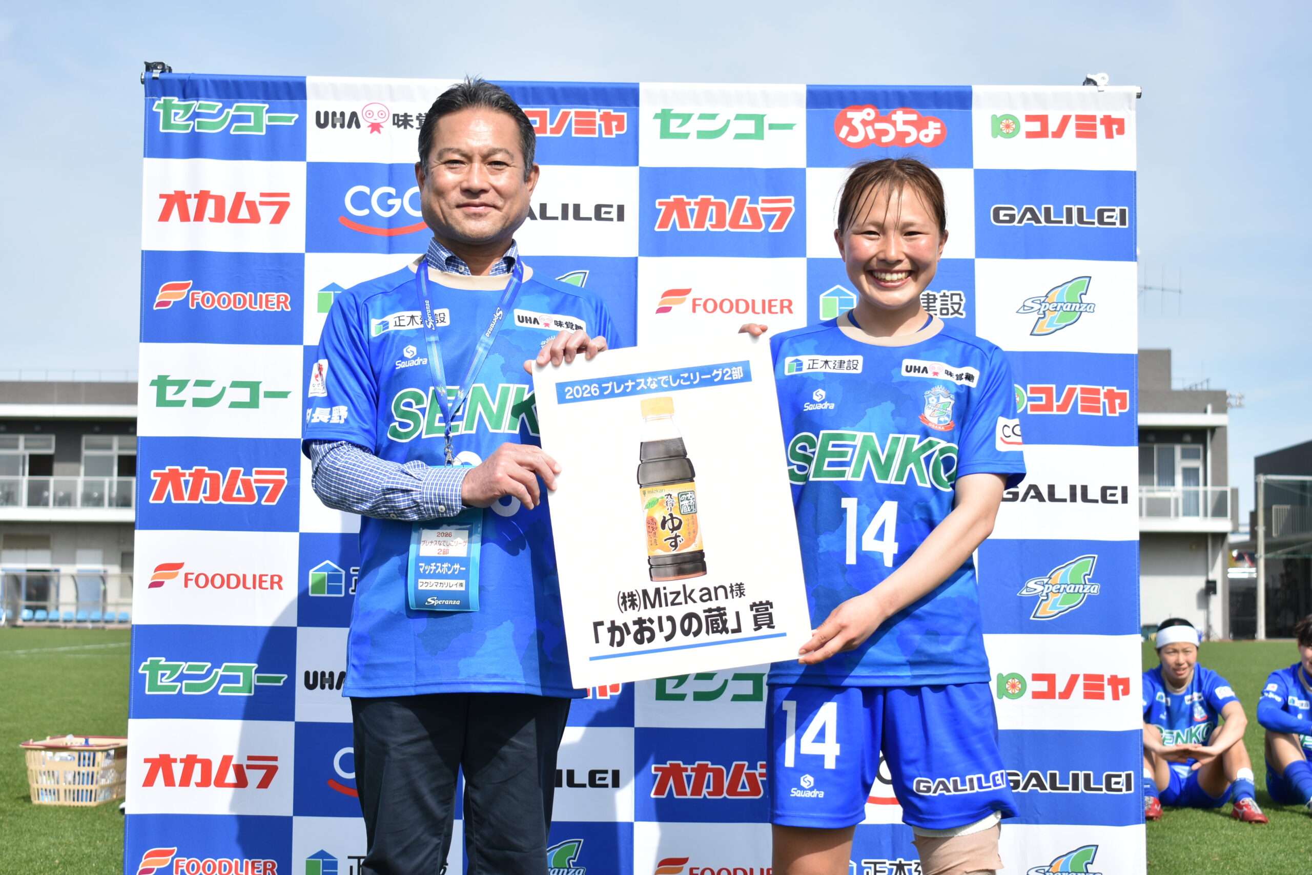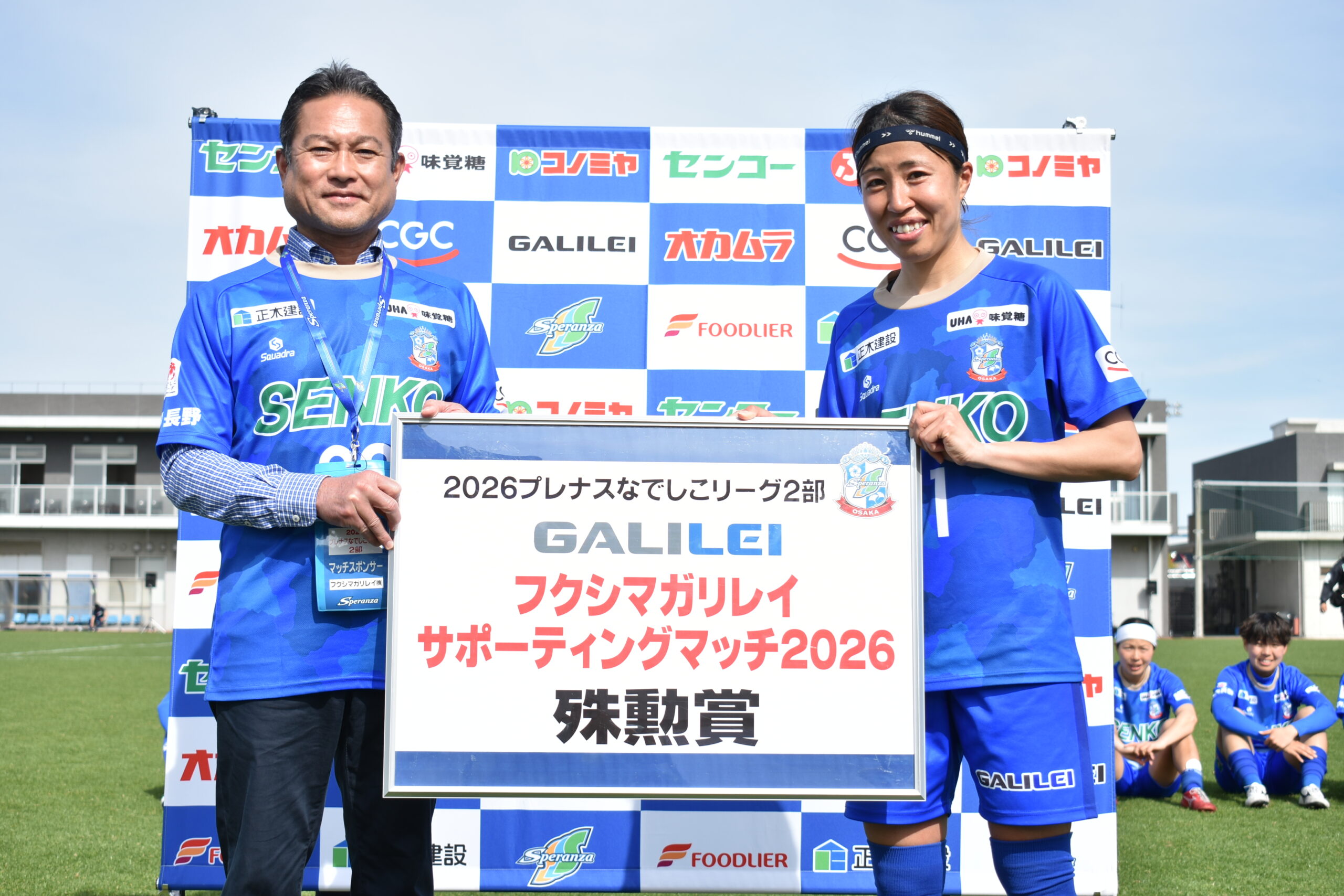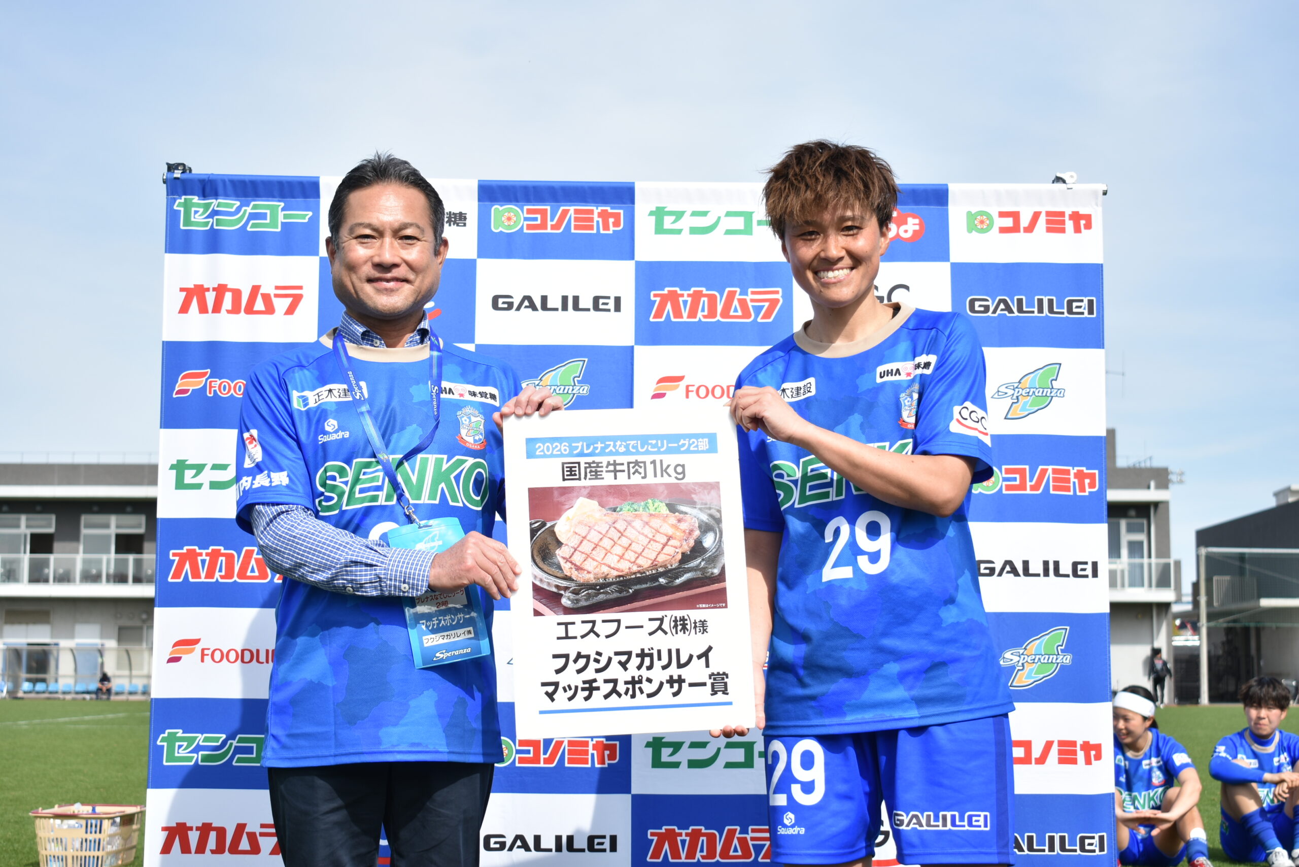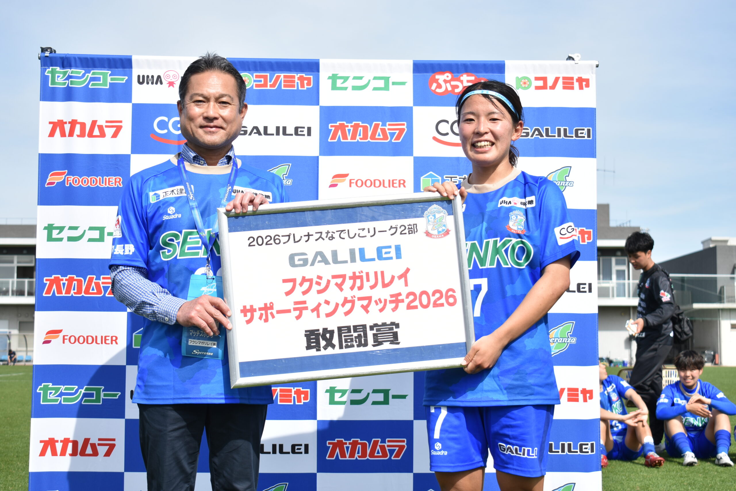 4月12日(日)におこなわれましたなでしこリーグ2部第5節『フクシマガリレイサポーティングマッチ2026』におきまして以下の各賞をご協賛いただきましたので、お知らせいたします。